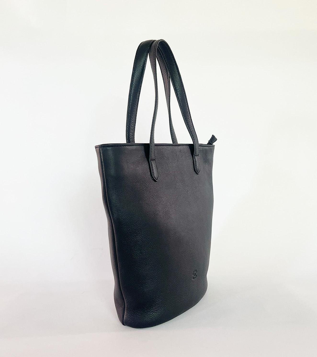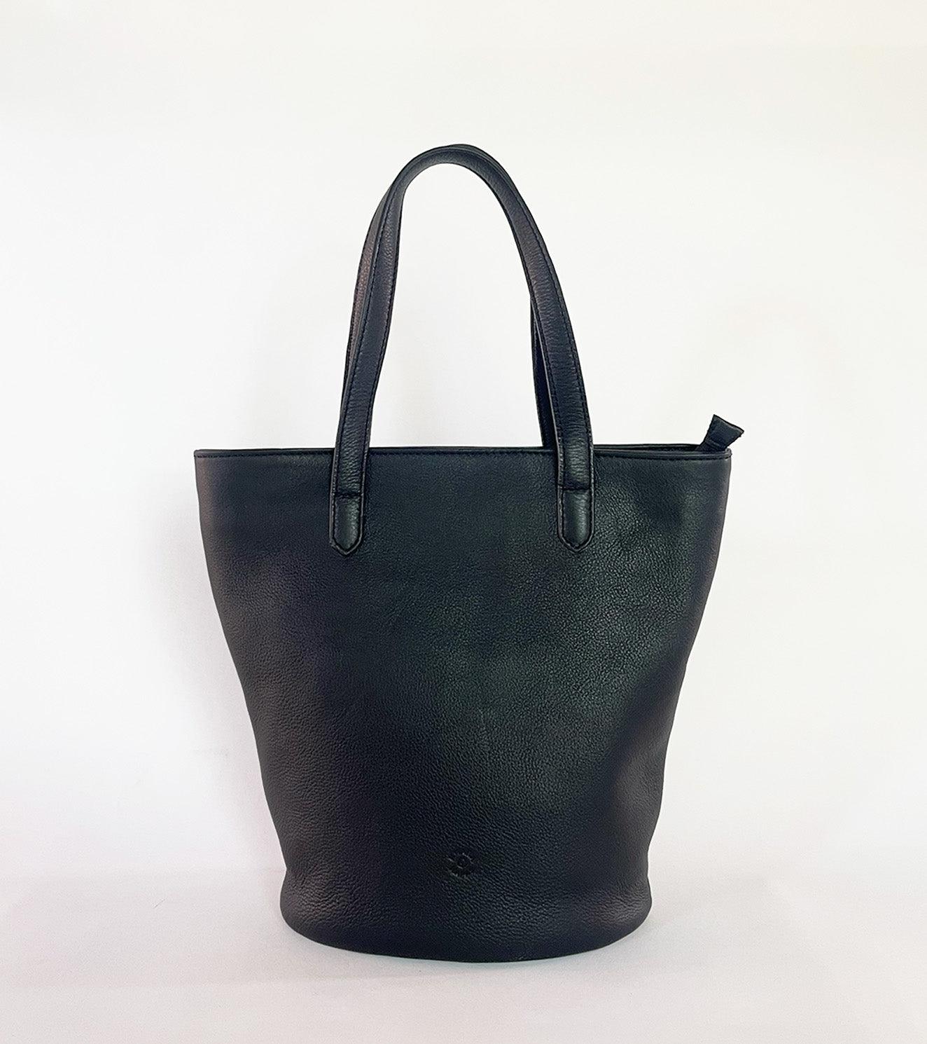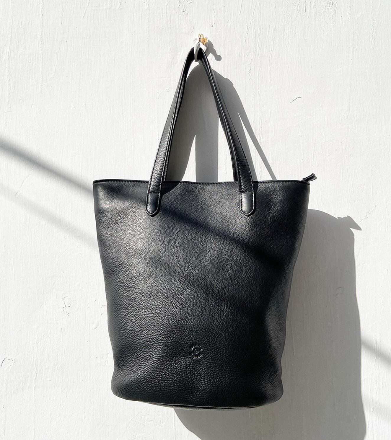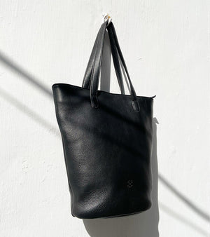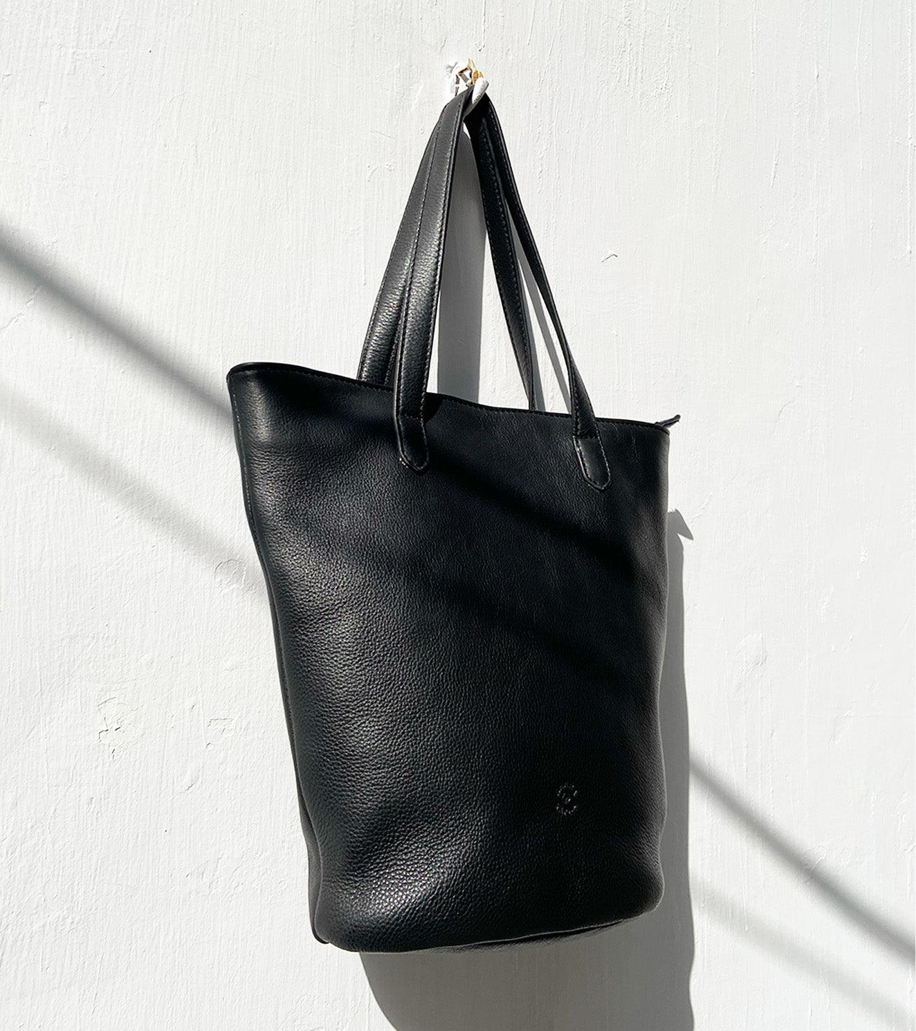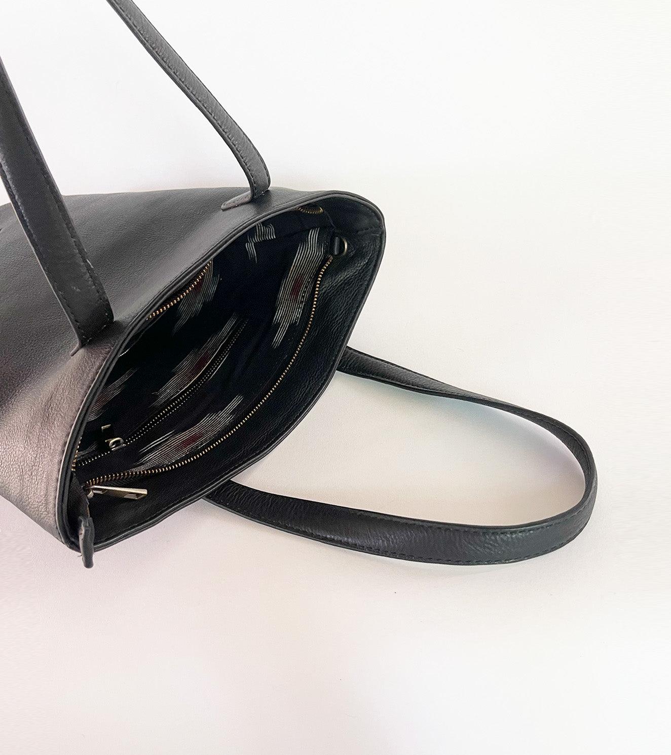 Our black coal coloured handbag is made with genuine leather that is responsibly sourced. Comes with a detachable long strap, zipper opening, a zipper pocket inside and fully lined with 100% ikat.