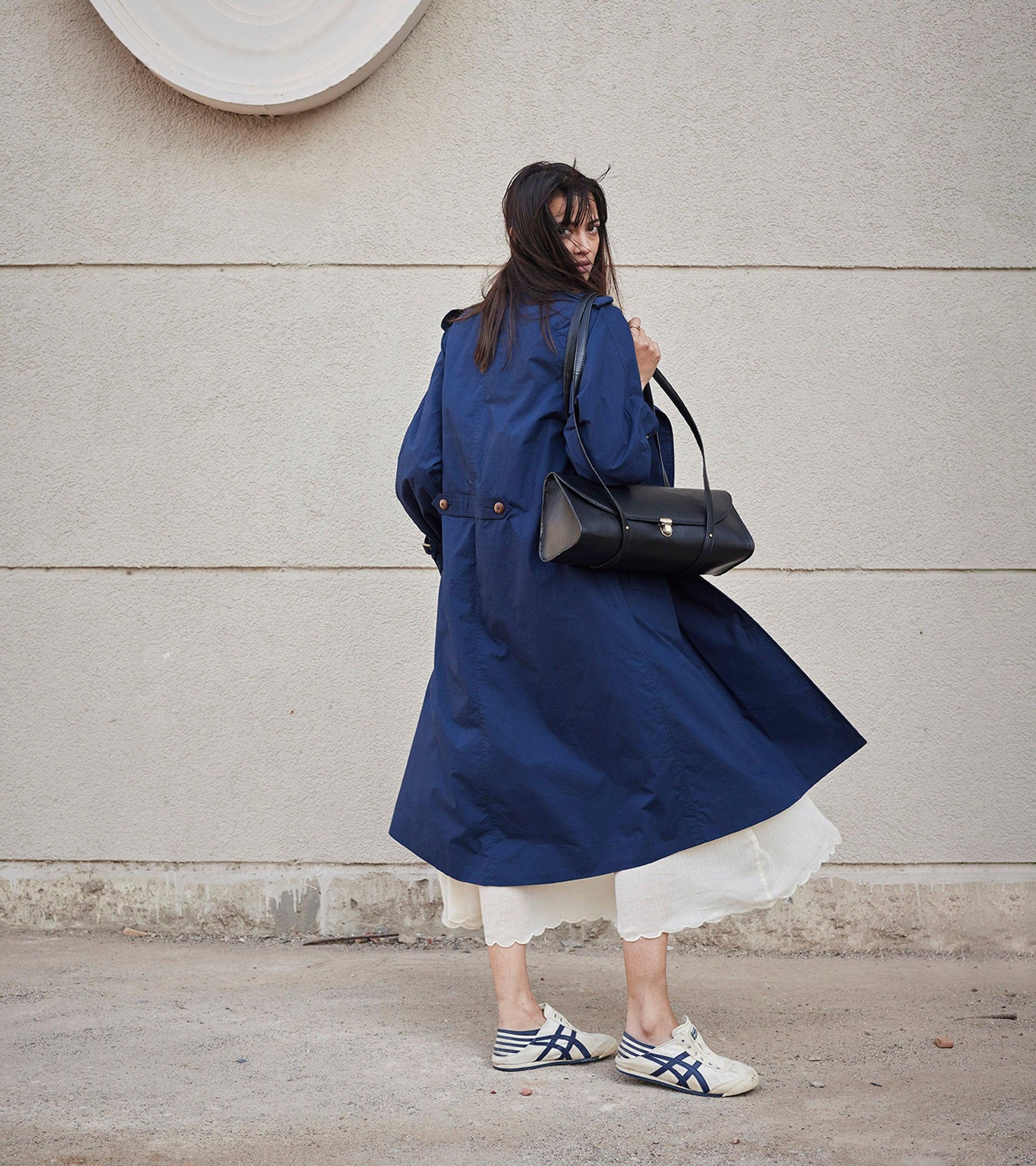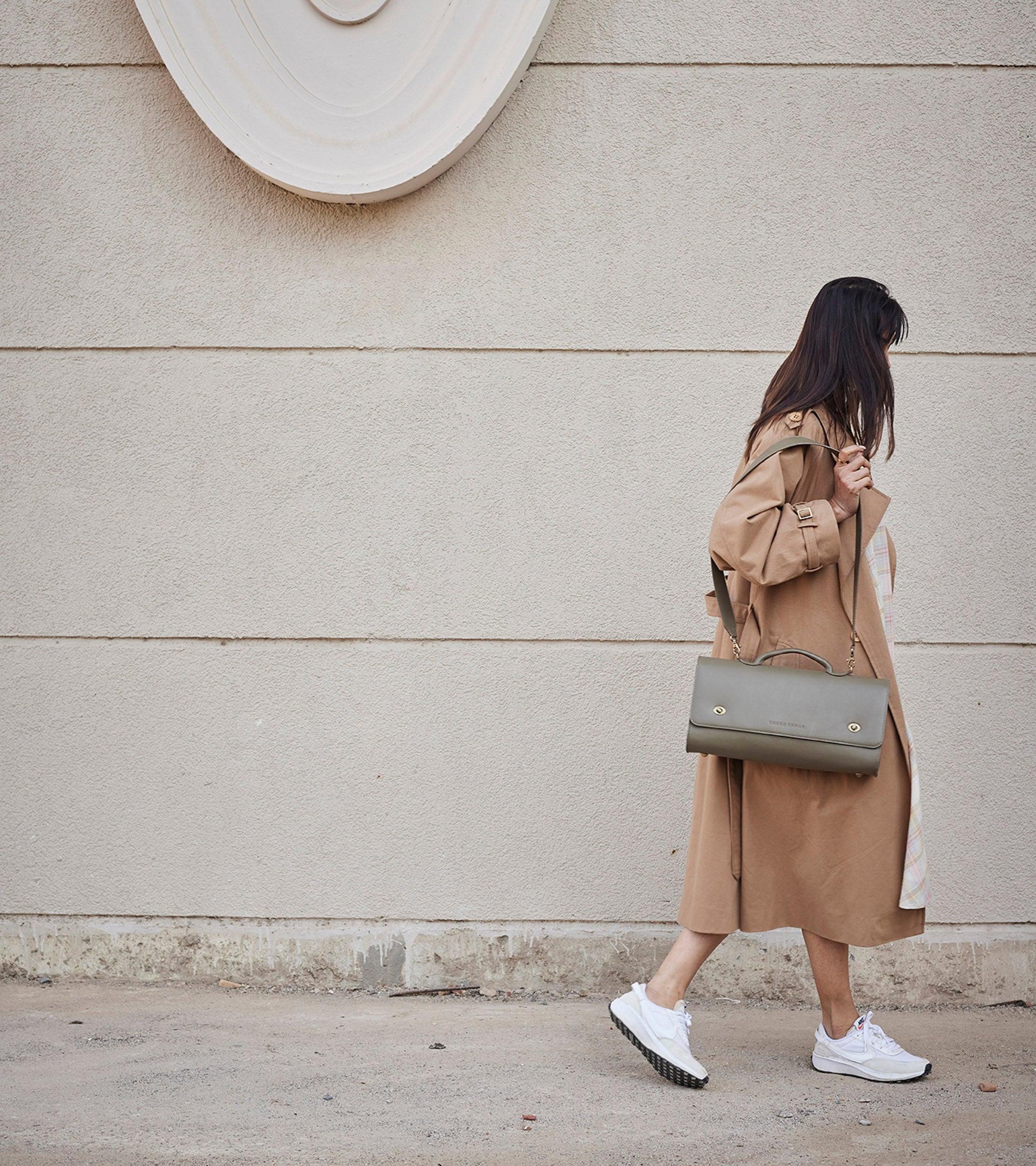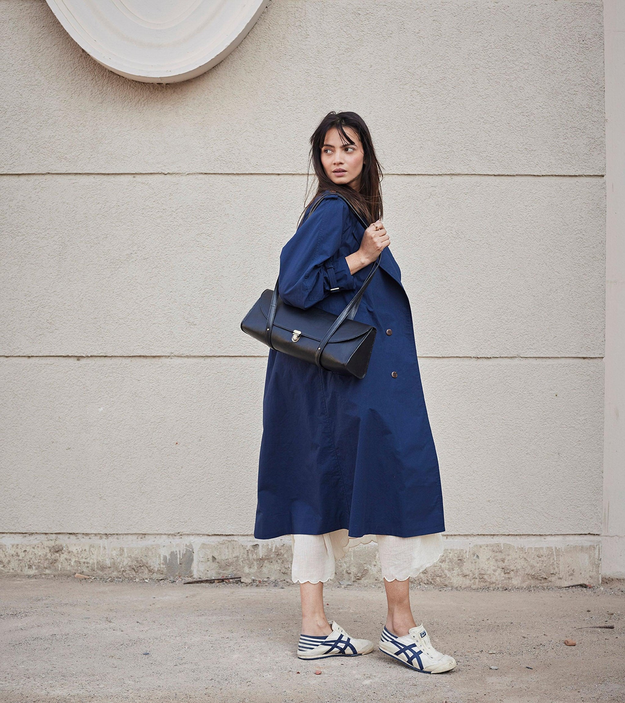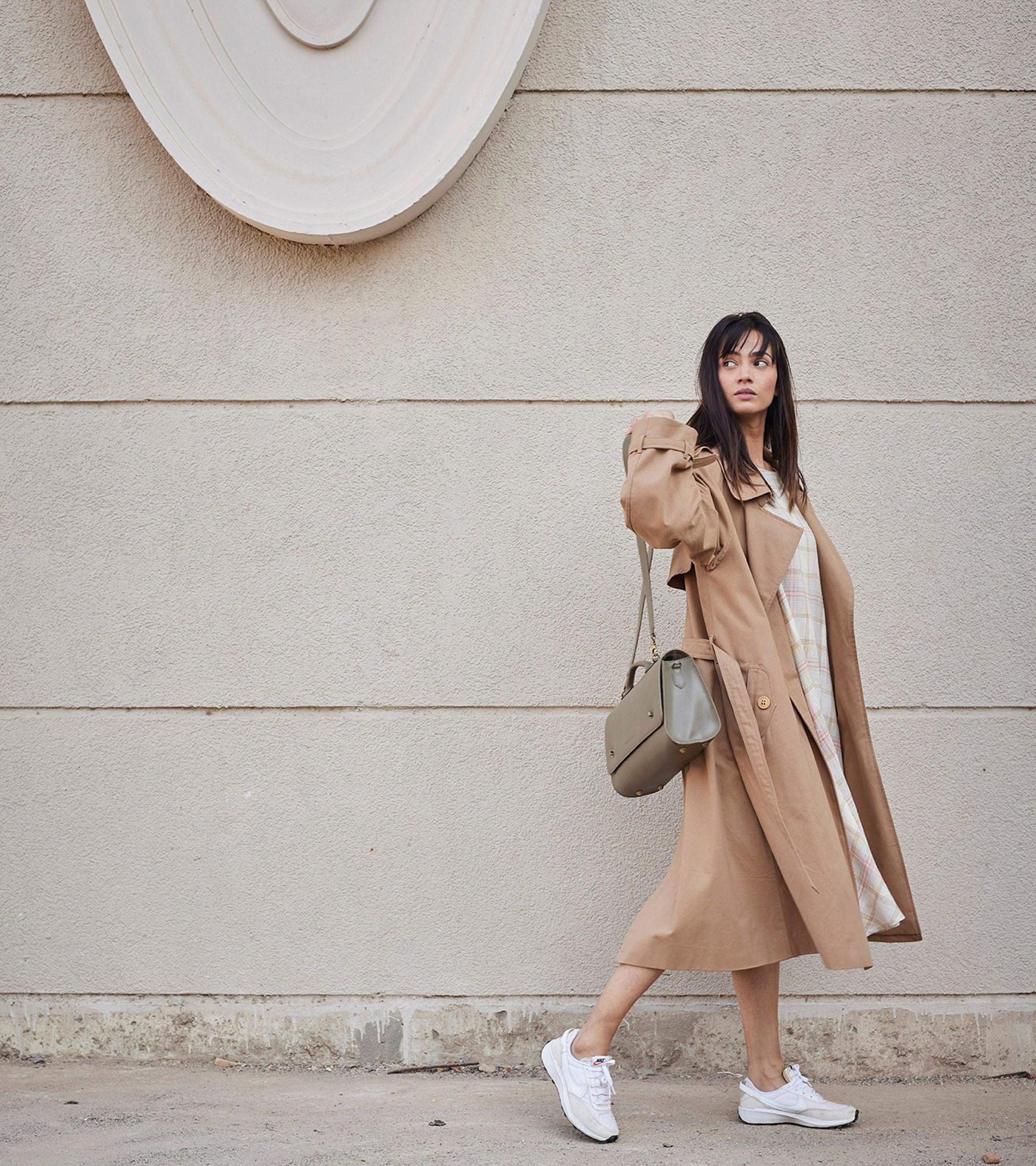A double-breasted classic trench coat with buttoned epaulettes, bracelet cuffs and button pockets.