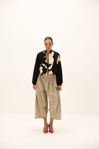 Relaxed wide-leg pants crafted in khadi fabric designed with a draped silhouette and pleated detailing for added volume and movement. The cropped length and deep side pockets lend a utilitarian yet fluid appeal, perfect for effortless styling.
