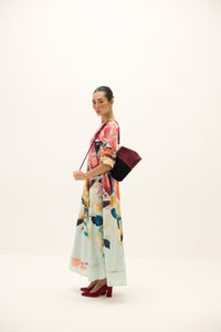 Crafted in airy mul, the Valencia Dress is a fluid, ankle-grazing silhouette that moves with ease. Designed with relaxed half sleeves and a round neckline, it showcases a vivid all-over print in painterly blooms, balanced against a soft pastel base. Subtle ladder stitch detailing at the hem adds a delicate finish. A statement yet effortless piece that transitions seamlessly from day to evening.