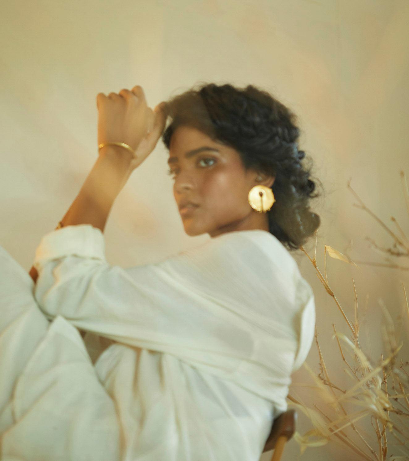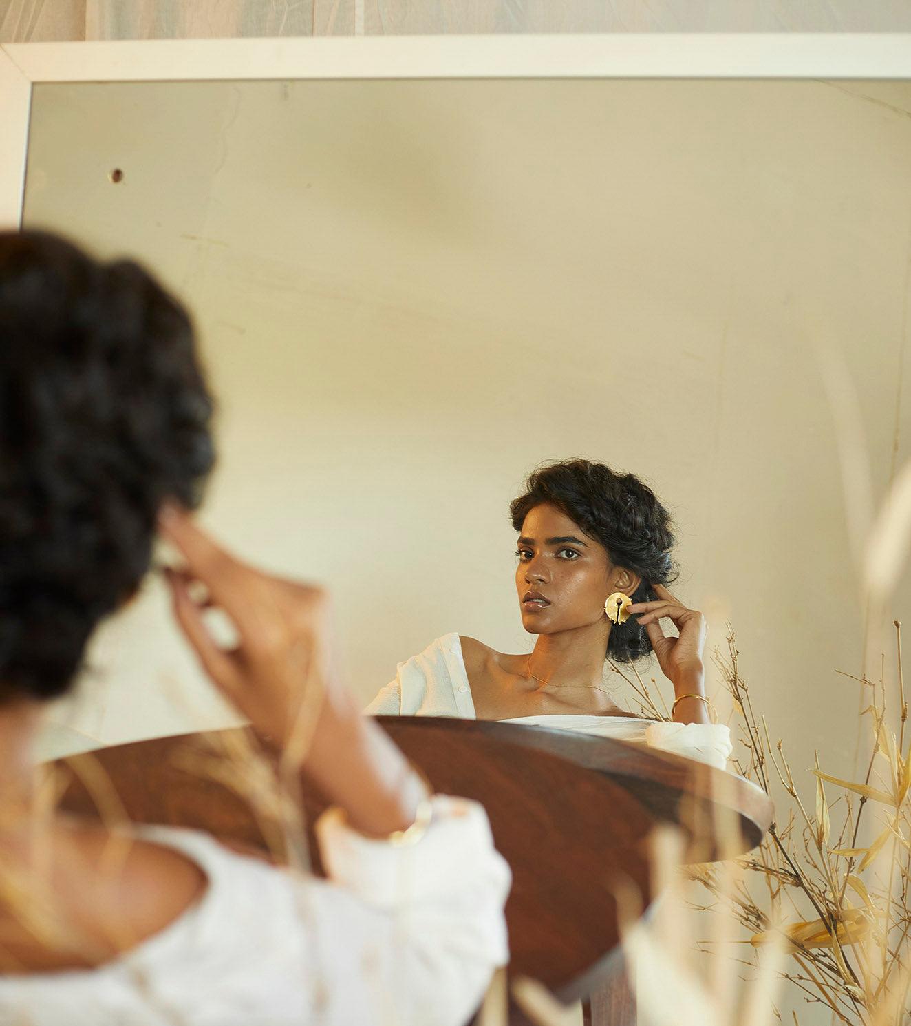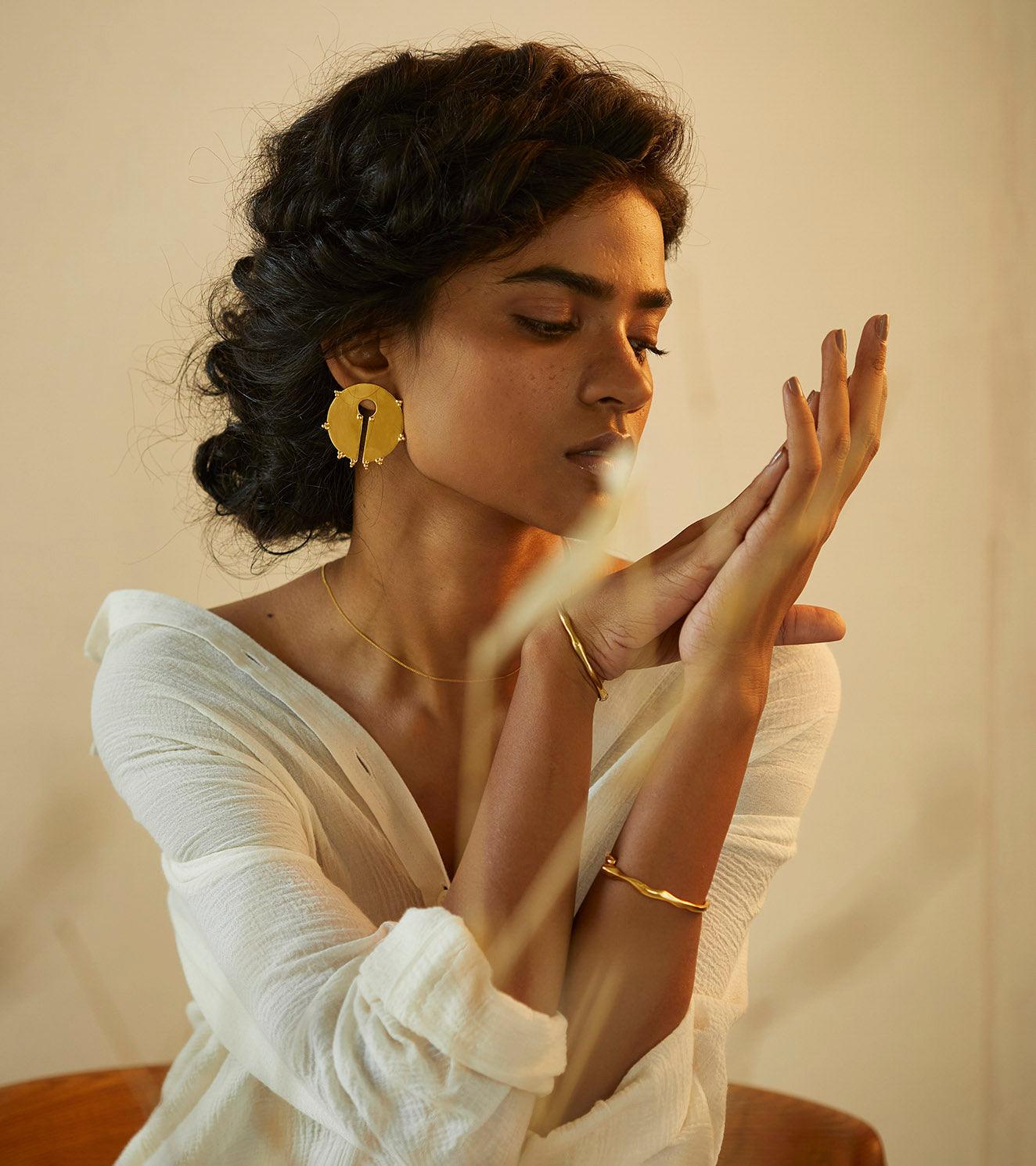 All our pieces are handcrafted in Jaipur, India. Made in brass and dipped in 18 karat gold by our artisans. Minimally constructed for everyday wear.