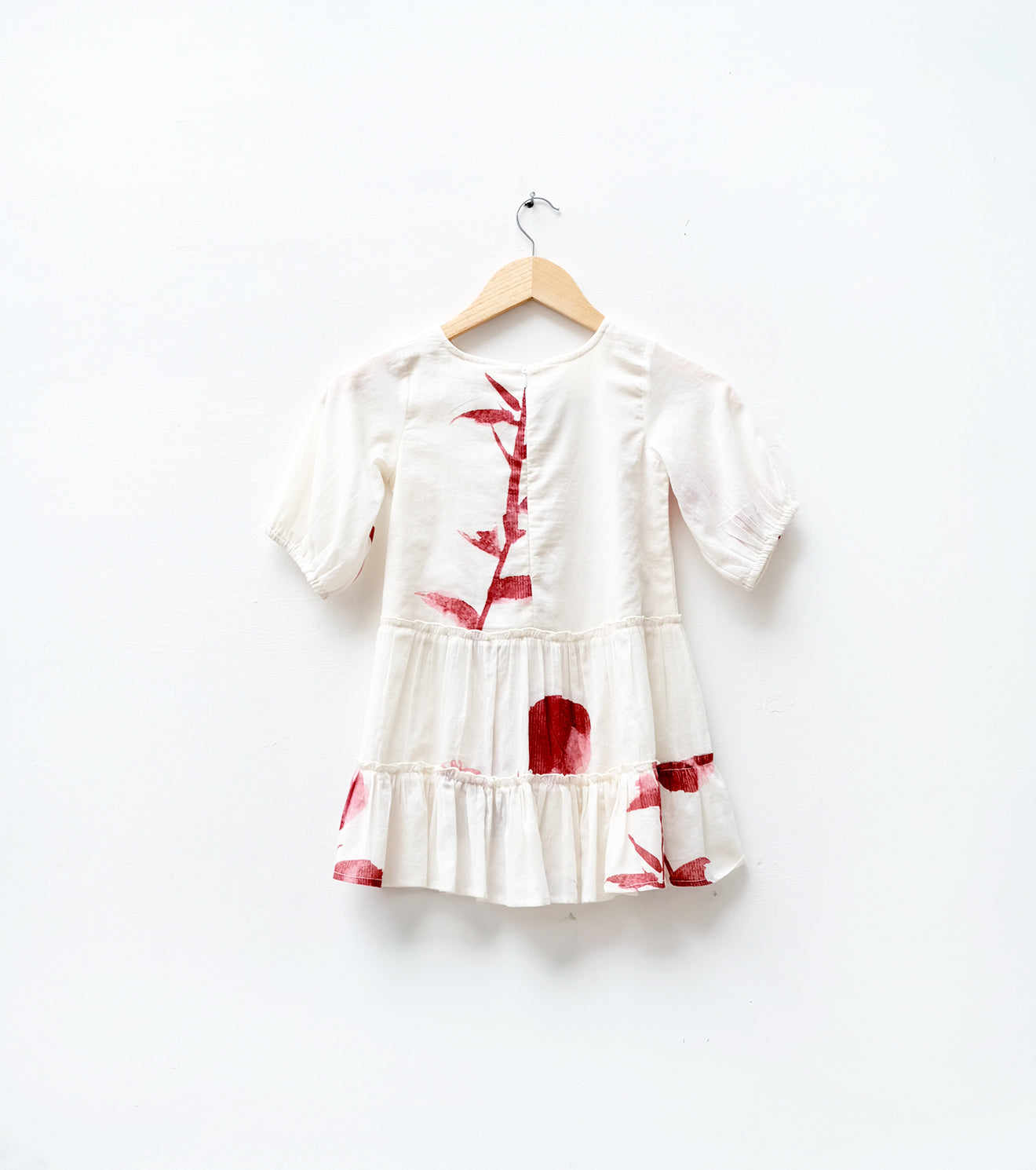The Rose Bloom Frock brings classic charm to little wardrobes with its white mul base blossoming in bold red roses. Puff sleeves add a sweet, vintage touch, while the soft elastic detailing ensures a comfortable fit. Finished with a smooth zipper for easy wear, this frock is made for twirls, play, and every rosy moment in between. Comes with a soft, coordinated bloomer for effortless wear.