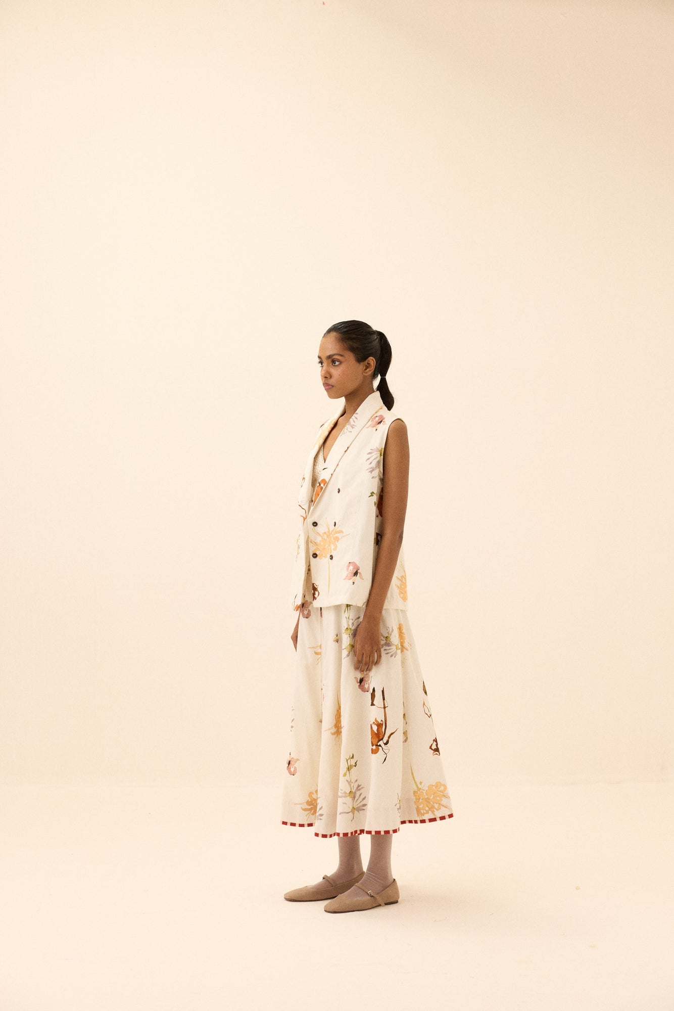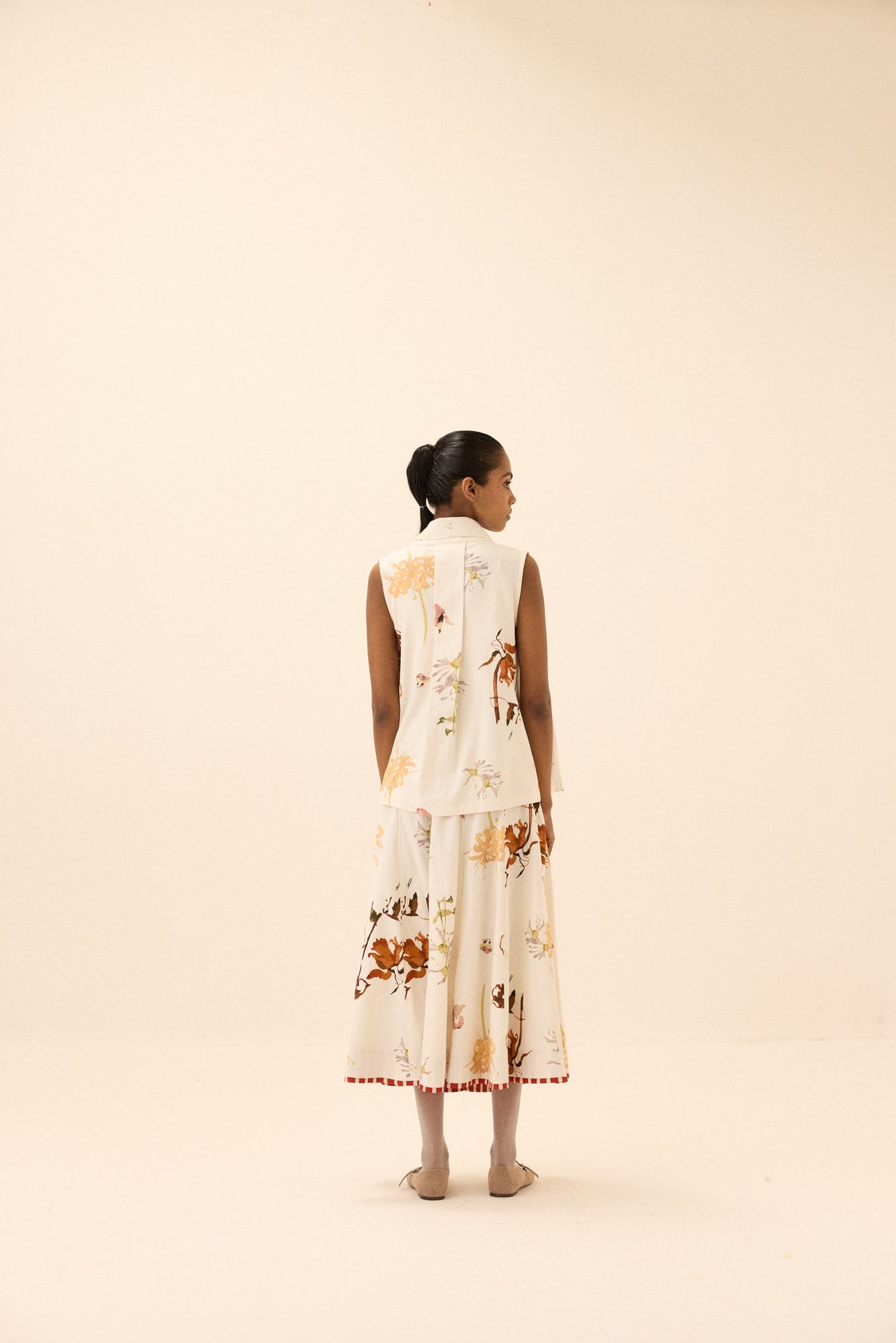 An oxford skirt brought to life with a bold abstract pattern for a contemporary, artistic look. It features a button and zipper fastening.