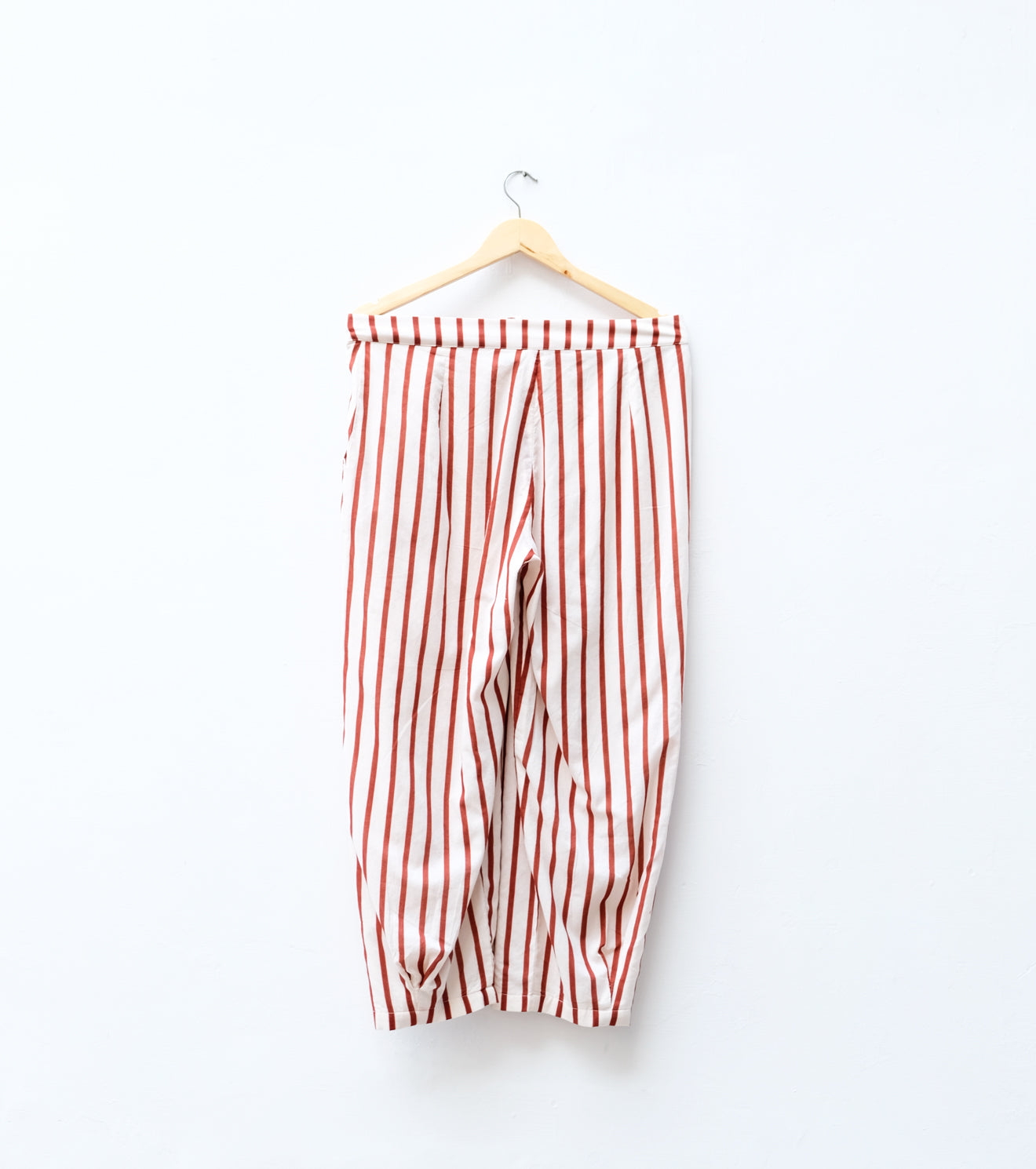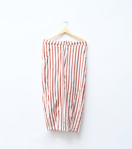 Easy, breathable trousers crafted in soft, handwoven cotton, featuring red and white stripes. Designed with a relaxed silhouette and elasticated waist.