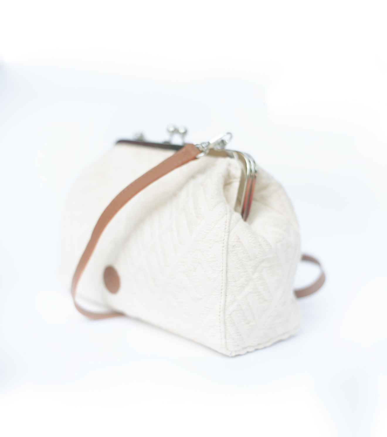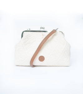 Elegant, minimal, and beautifully textured, this off-white canvas clutch brings together craftsmanship and utility. Designed with a subtle woven pattern and a detachable tan strap, it doubles as a handheld clutch or a chic sling. Perfect for daytime events or evening gatherings, it adds understated sophistication to any look while keeping essentials close and secure.