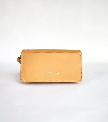 An envelope wallet that effortlessly fits in your routine. Handcrafted in genuine leather with black ikat khadi detailing inside. It has three compartments, one zip pocket and 7 card holders. Comes with a detachable leather strap to carry the wallet as a crossbody / sling.