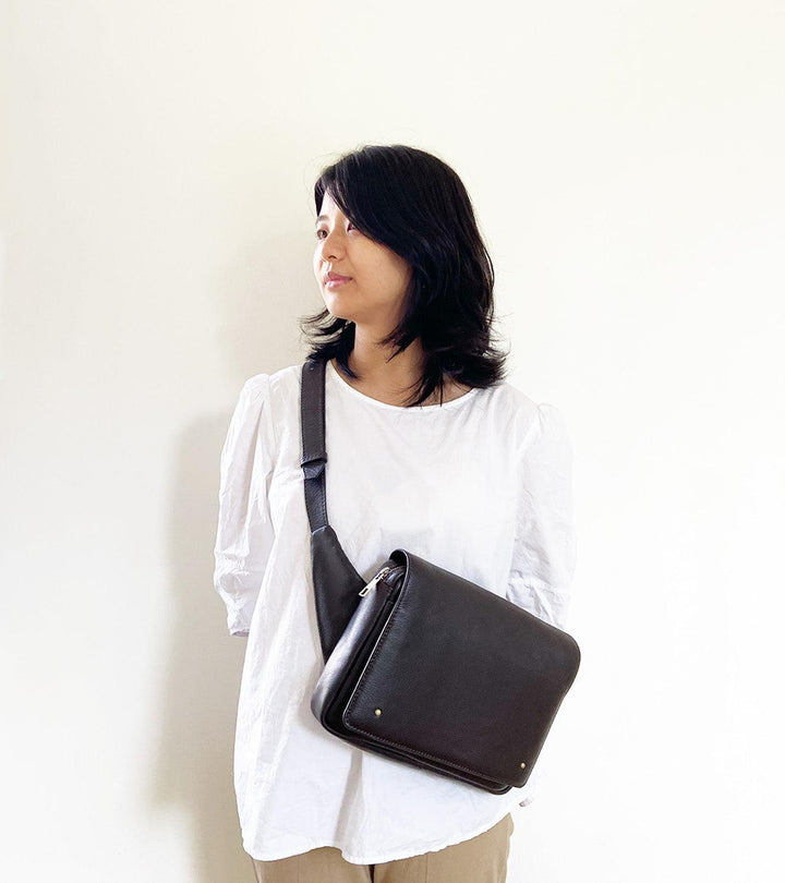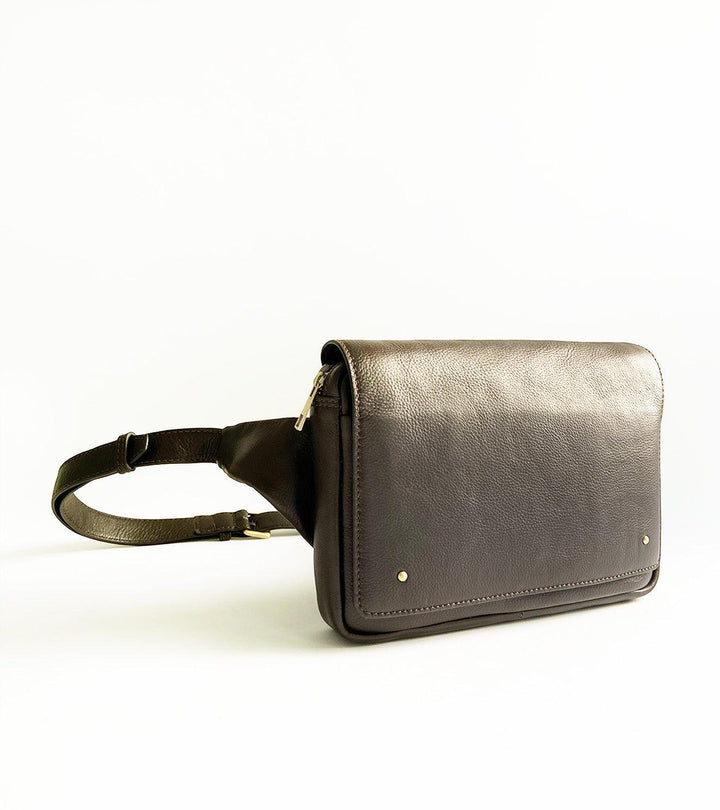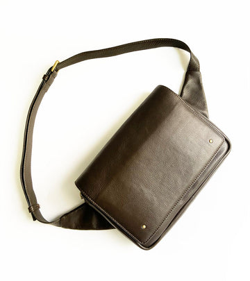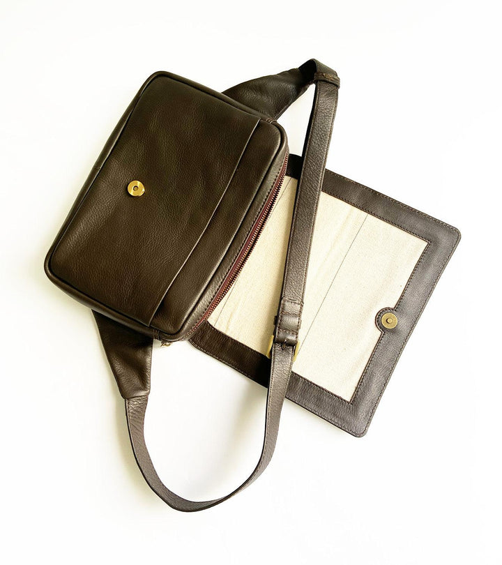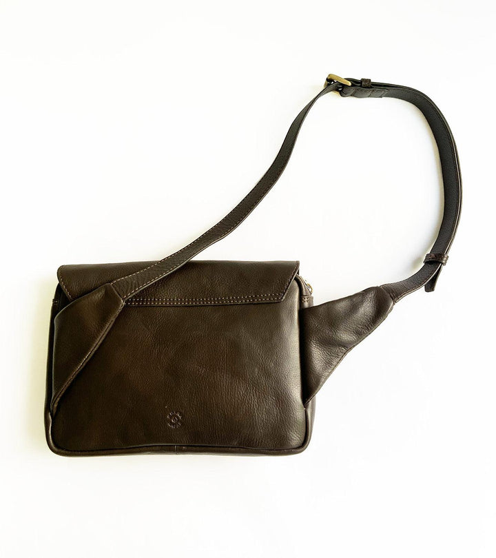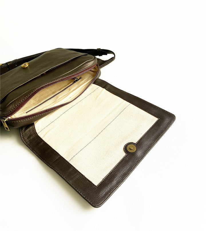 A coco brown leather pack handcrafted in genuine leather. It comes with a flap opening and front pocket and a zipper opening inside. A perfect bag to carry your essentials and standout at the same time.