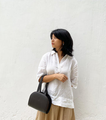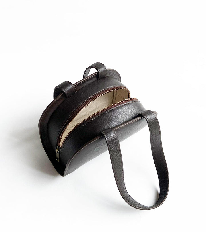 A coco brown leather bag handcrafted in genuine leather. It comes with a zipper opening. A perfect mini bag to carry your essentials and standout at the same time.