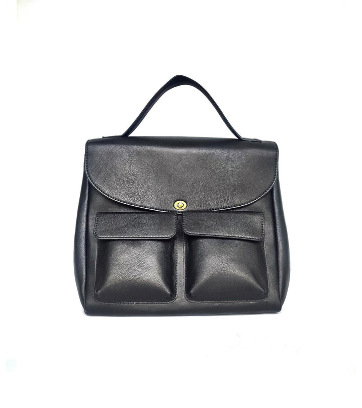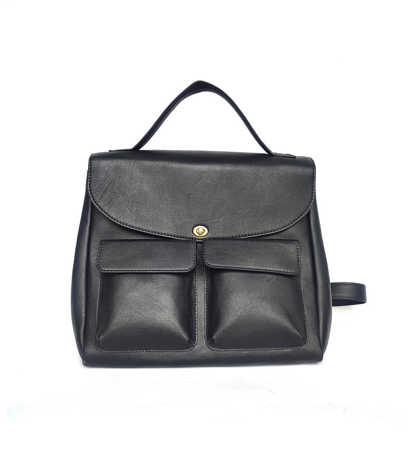 A spacious classic black bag. It comes with two front pocket and a zipper pocket inside. A perfect bag to carry your essentials.