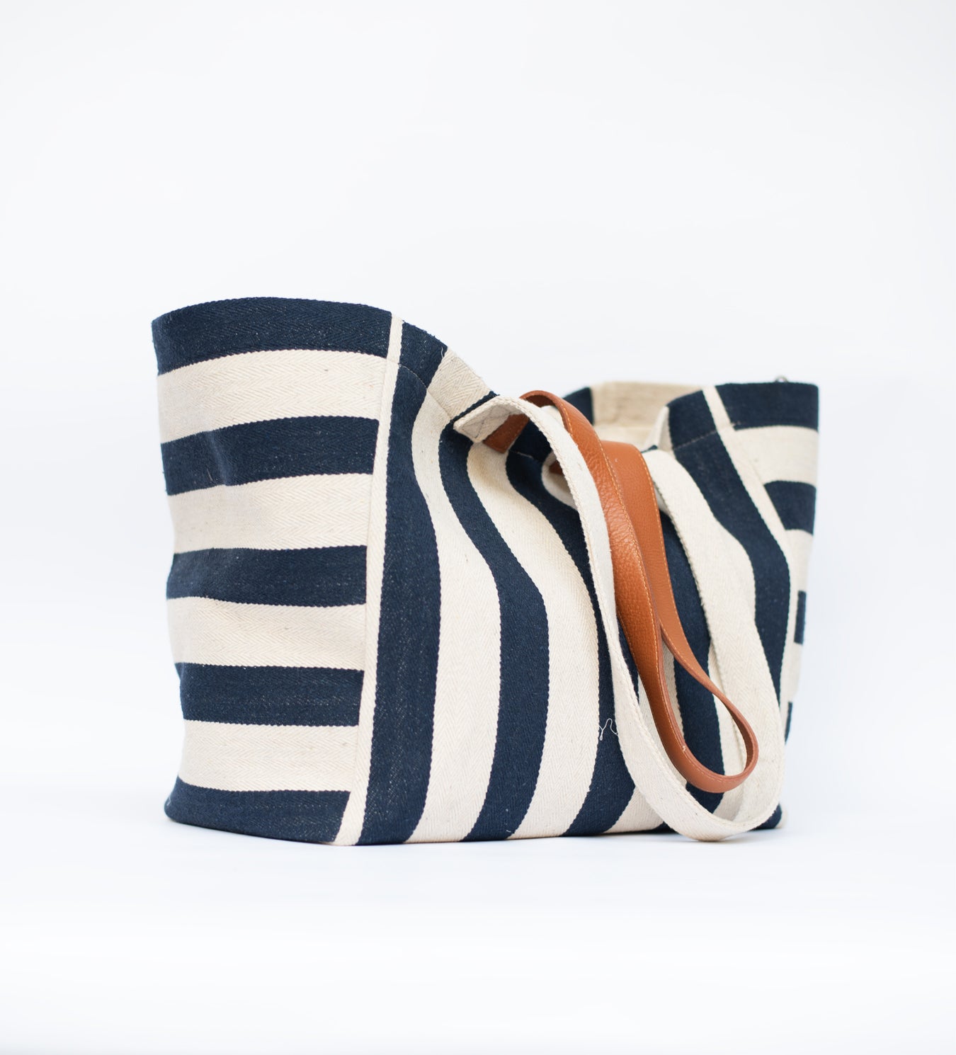 Spacious and structured, this tote is crafted in sturdy canvas with a striking contrast of deep blue and white. Designed with dual straps - one in matching canvas and another in brown leather - it blends ease with elegance. Perfect for daily errands, work, or travel, this versatile tote carries it all while keeping your look effortlessly refined.