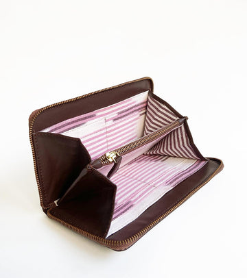 Zip-Around Wallet that effortlessly fits in your routine. Handcrafted in genuine leather with ikat detailing inside. Equipped with 2 compartments one zip pocket and 8 card holder