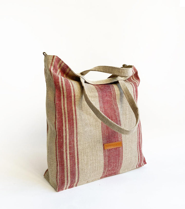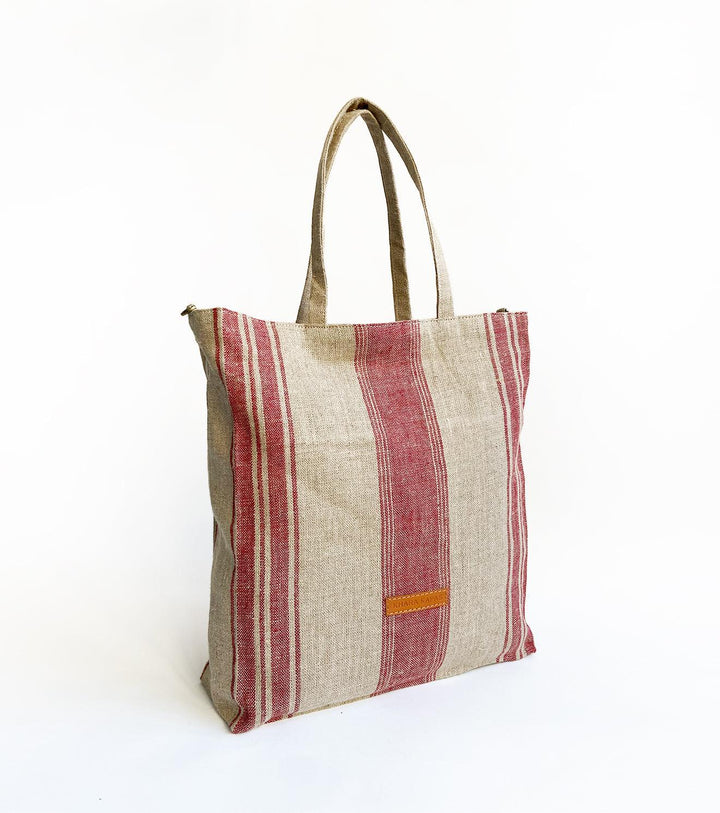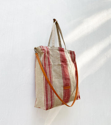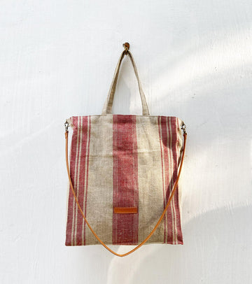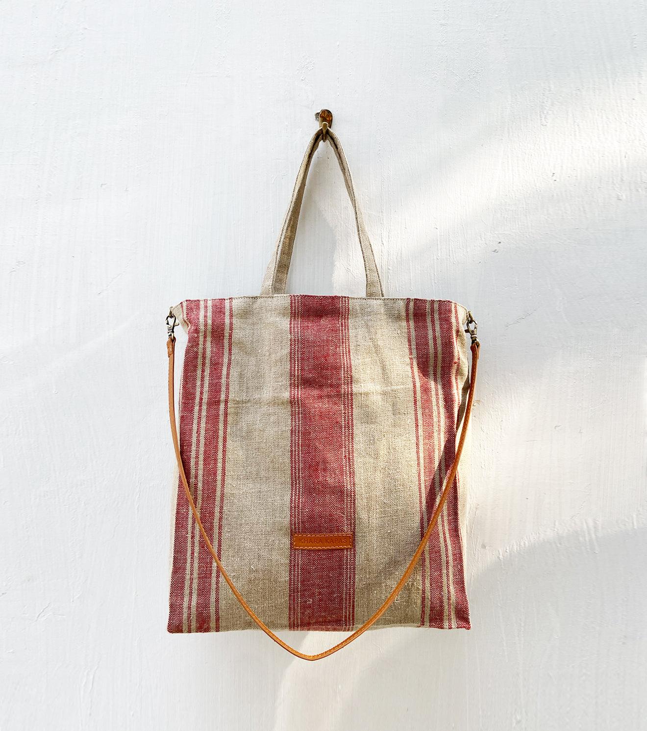 A spacious jute bag that comes with a zipper pocket inside and a detachable genuine leather strap. This spacious beauty is for travel, run your errands and for us its the perfect work bag.