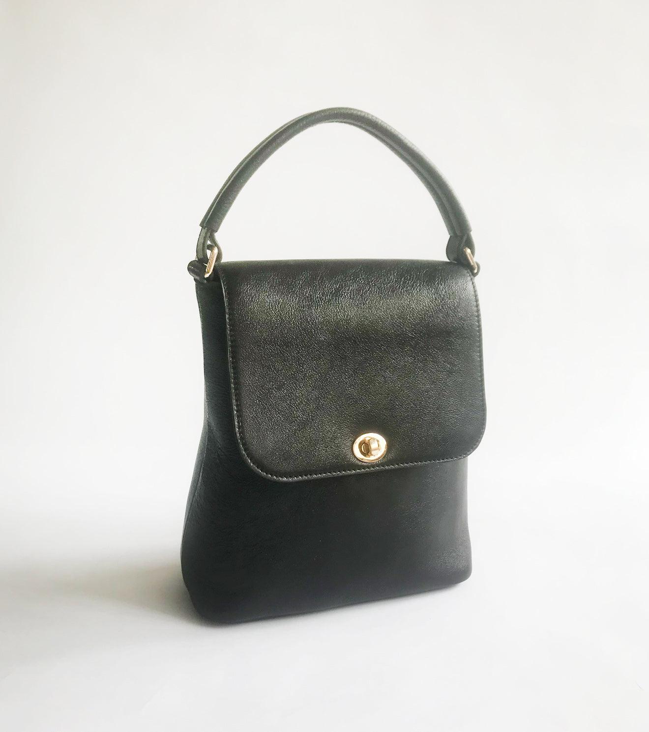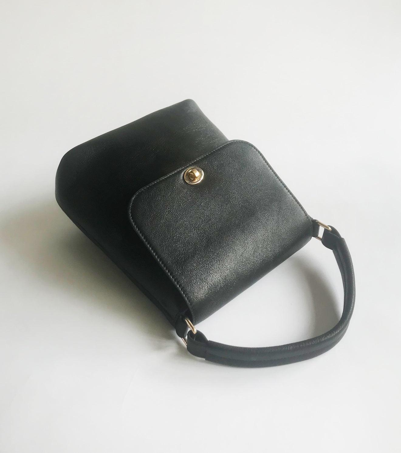 A mid size black shoulder bag. It comes with  one inside pocket. A perfect companion for your outings.