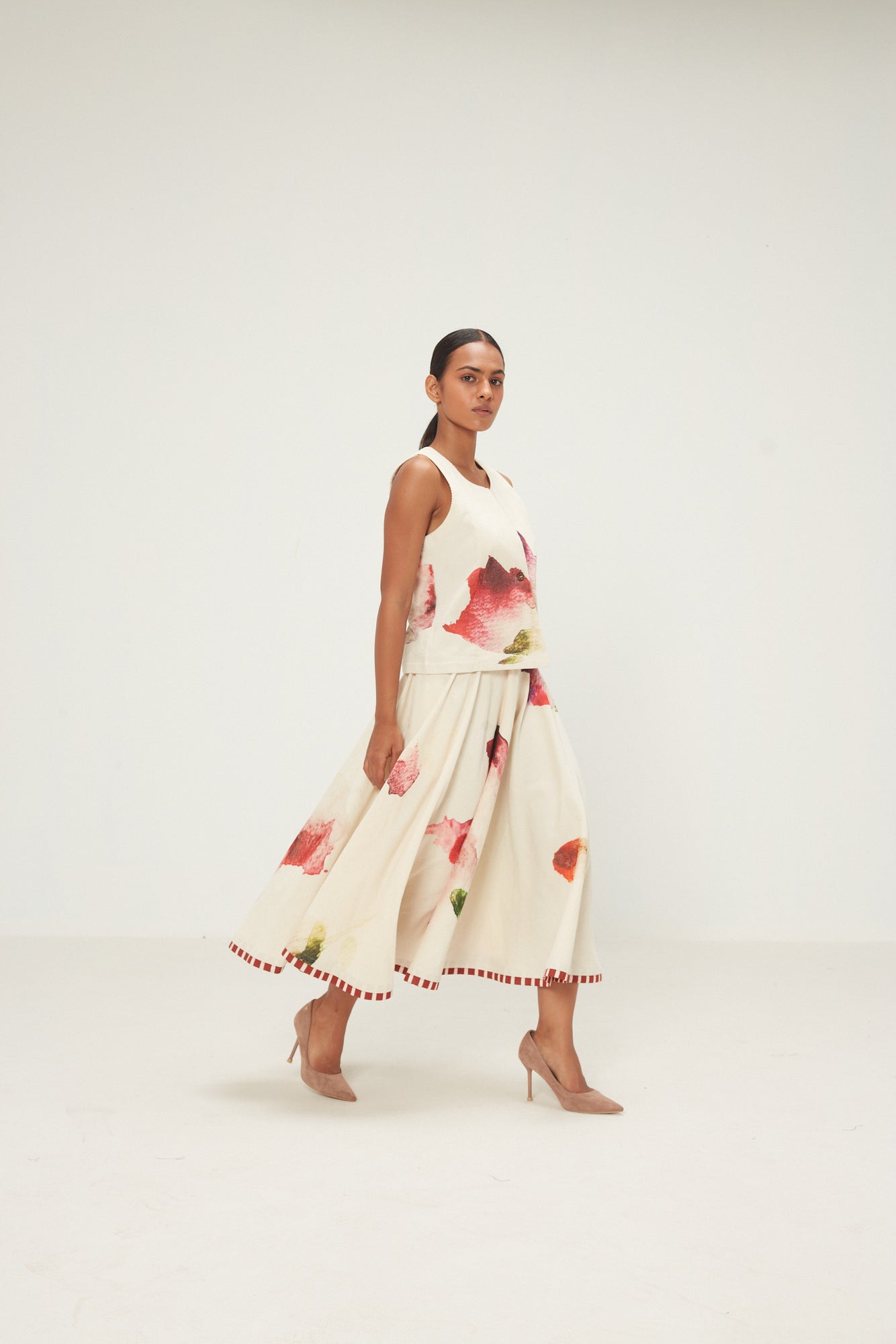 Capture the essence of a tranquil and easy summer, in this co ord set, a perfect blend of comfort and style in our scattered monochromatic print. The skirt has a button and zipper fastening.