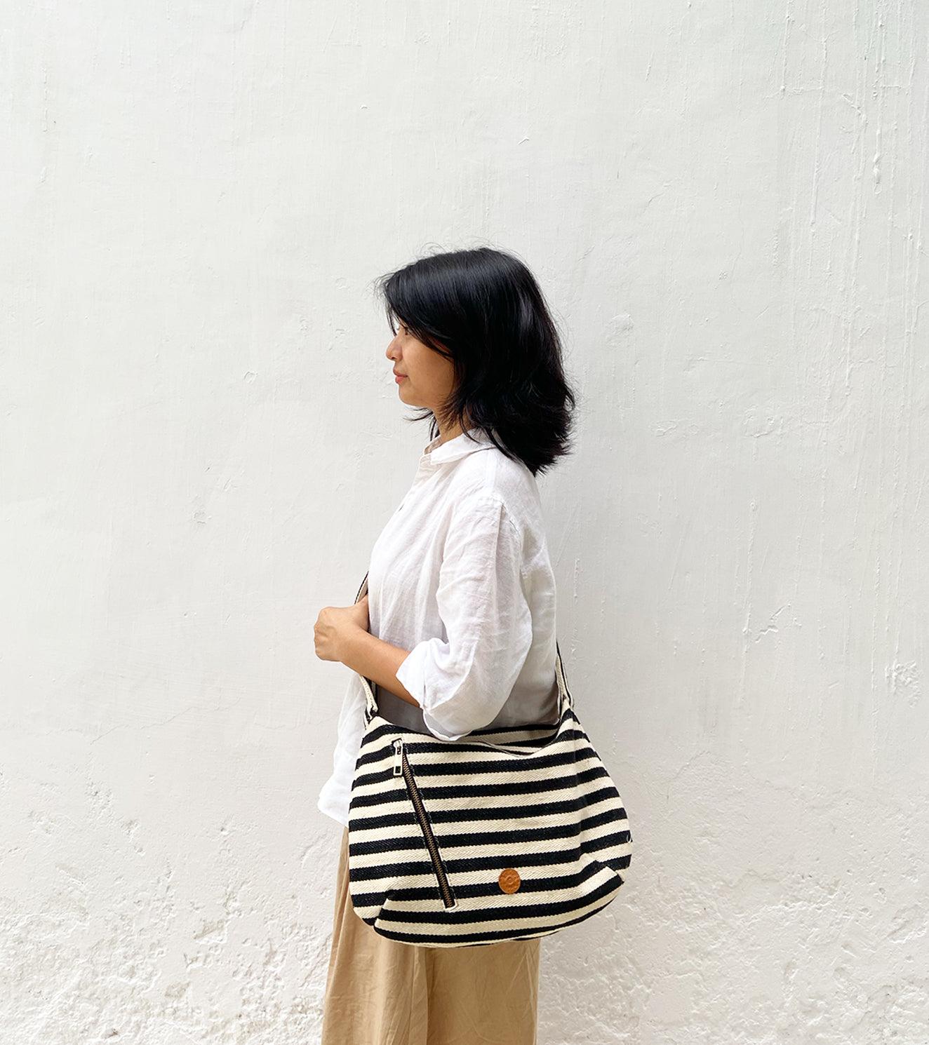 A spacious bag handcrafted in handloom cotton. It comes with one zipper pocket inside. A perfect bag to carry your essentials and standout at the same time.