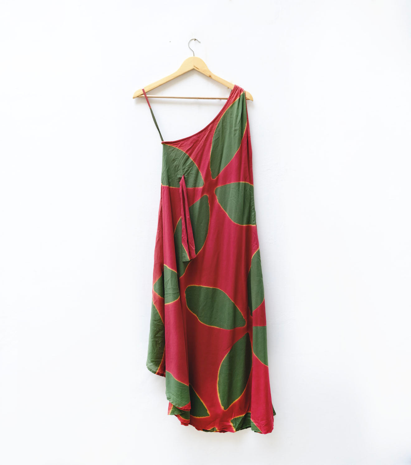 This one shoulder dress is a charming translation of the season in our signature shibori dyed soft cotton mul fabric.