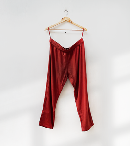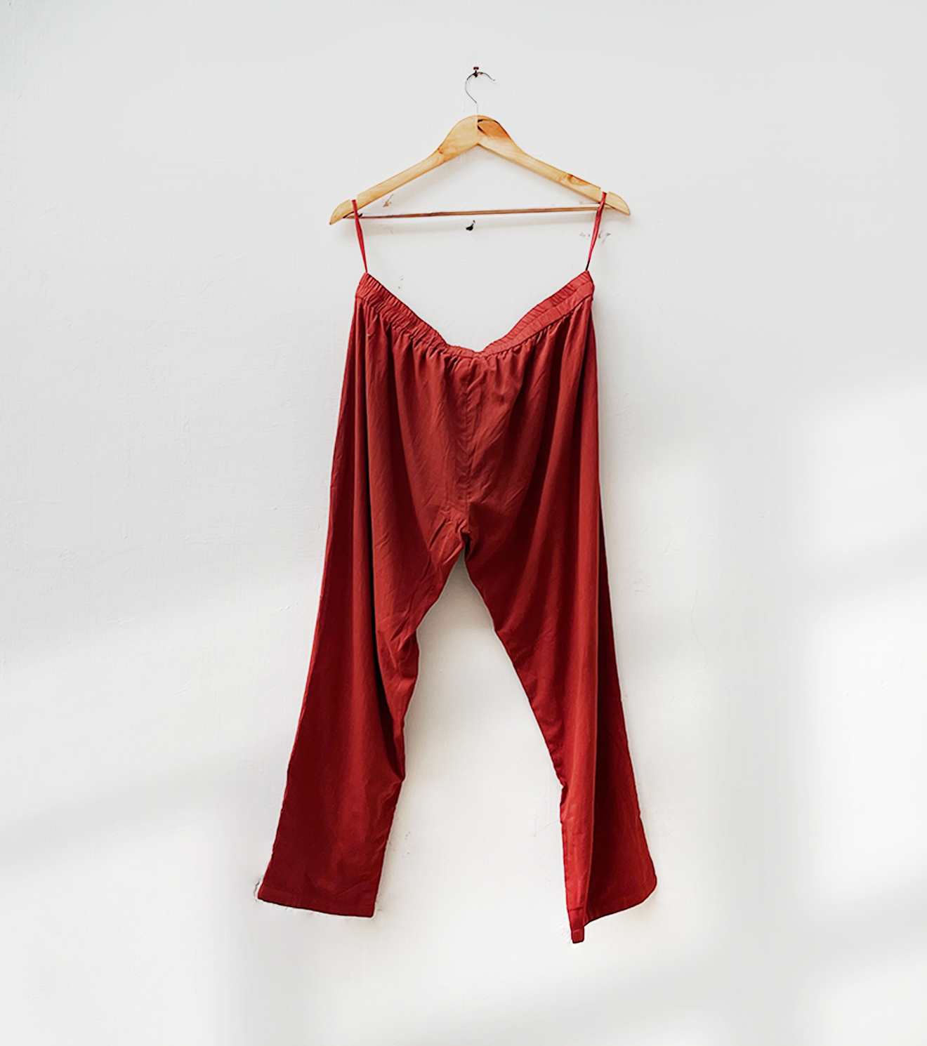 A pair of fluid, deep red pants in cotton mul, that blur the line between structure and softness. A quiet rebellion in fabric form, made for days when you want to feel both rooted and free.