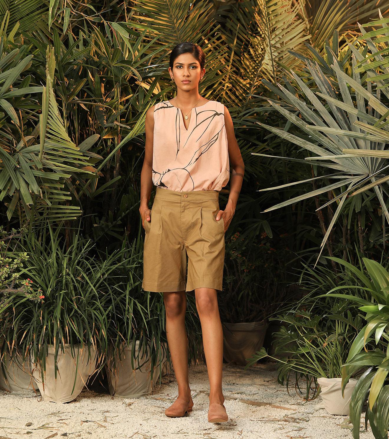 Looking for a quick escape? The look no further. A pair of chic bermuda shorts in khaki brown to accompany you at every step along the way as you recede into the wilderness. It comes with a plain waist band and a button closure at front.