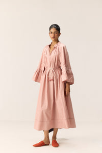 A soft pink poplin dress that blends structure with softness. Featuring beautifully tiered sleeves and an added tier at the hem, it’s finished with a drawstring waist for adjustable comfort and pockets for everyday ease. Feminine, functional, and effortlessly charming.
