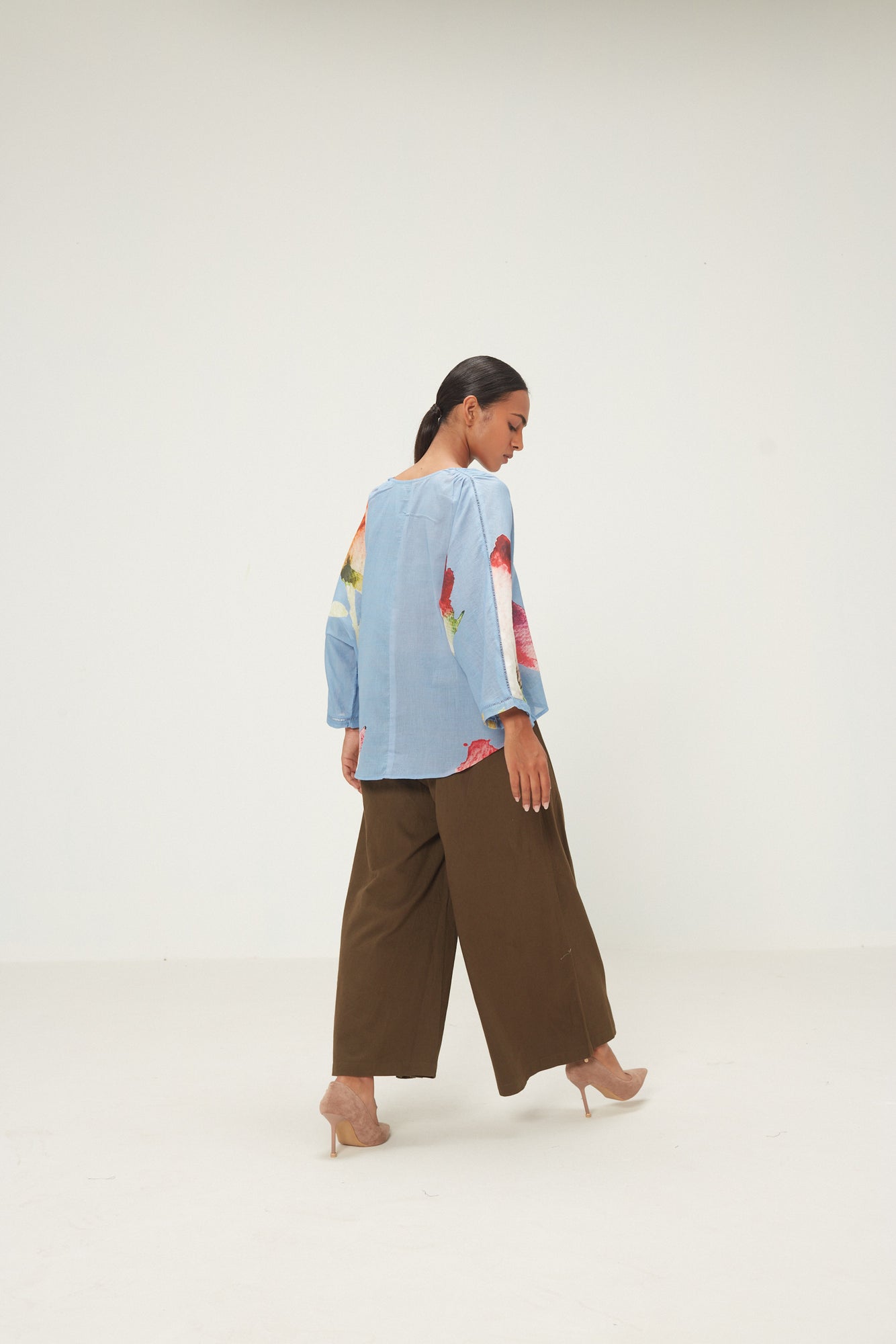 The Vinca Top is tailored in soft mul. An anti fit top detailed with a striking floral pattern on a fresh blue base and lace detail, it is perfect for a modern, effortless look.